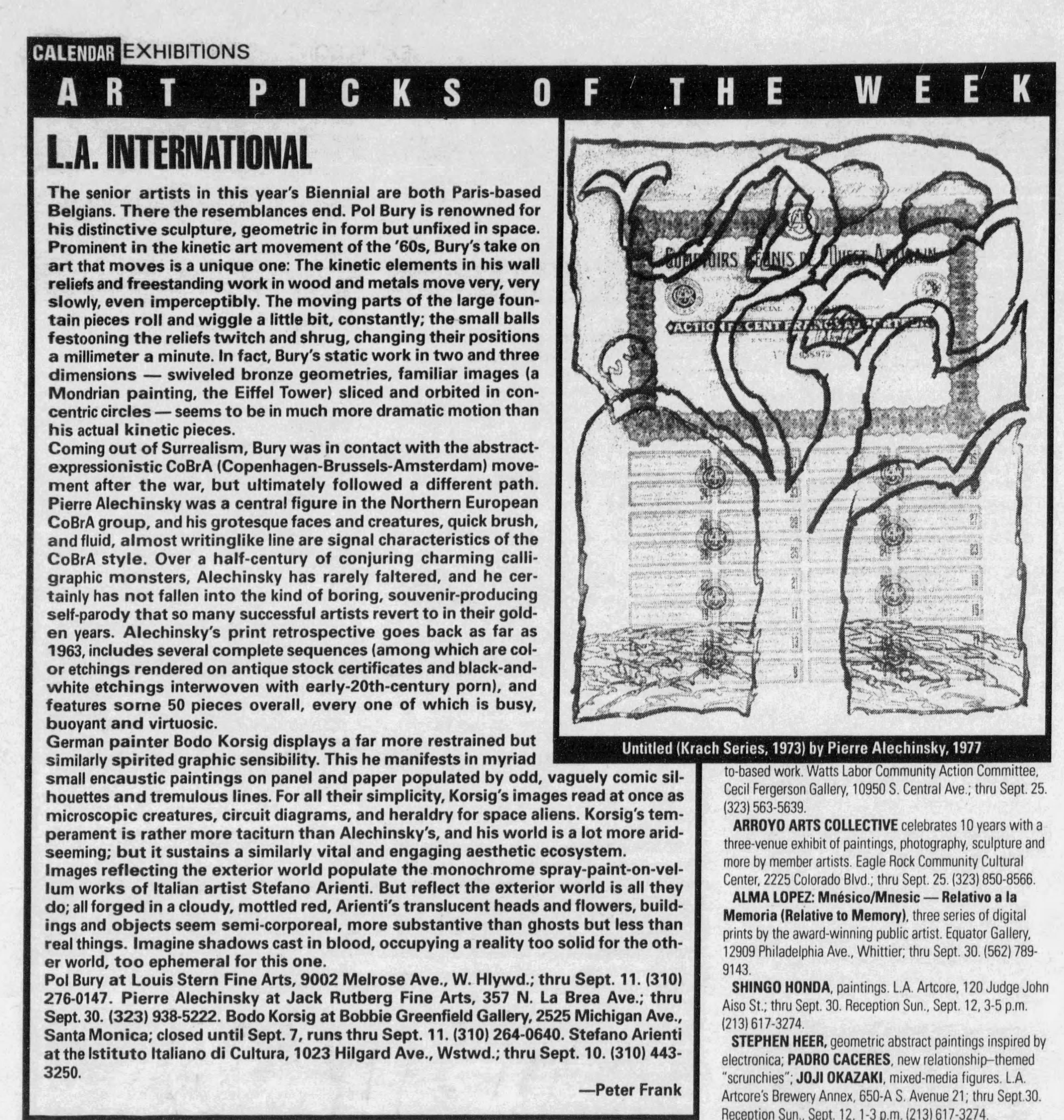At Louis Stern Fine Arts, Pol Bury’s free-standing fountains and kinetic wall sculptures convey a sense of futuristic optimism that is often associated with the clean-living 1950s and free-loving 1960s.